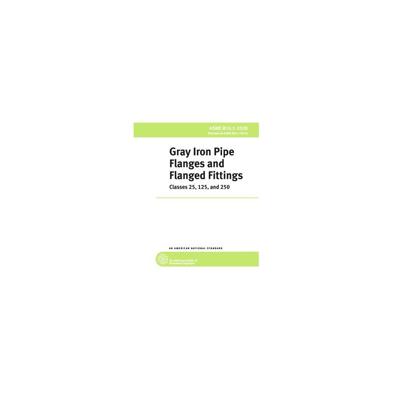This Standard for Classes 25, 125, and 250 Cast Iron Pipe Flanges and Flanged Fittings. It includes (a) pressure-temperature ratings, (b) sizes and method of designating openings of reducing fittings, (c) marking, (d) materials, (e) dimensions and tolerances, (f) bolting and gaskets (g) pressure testing.